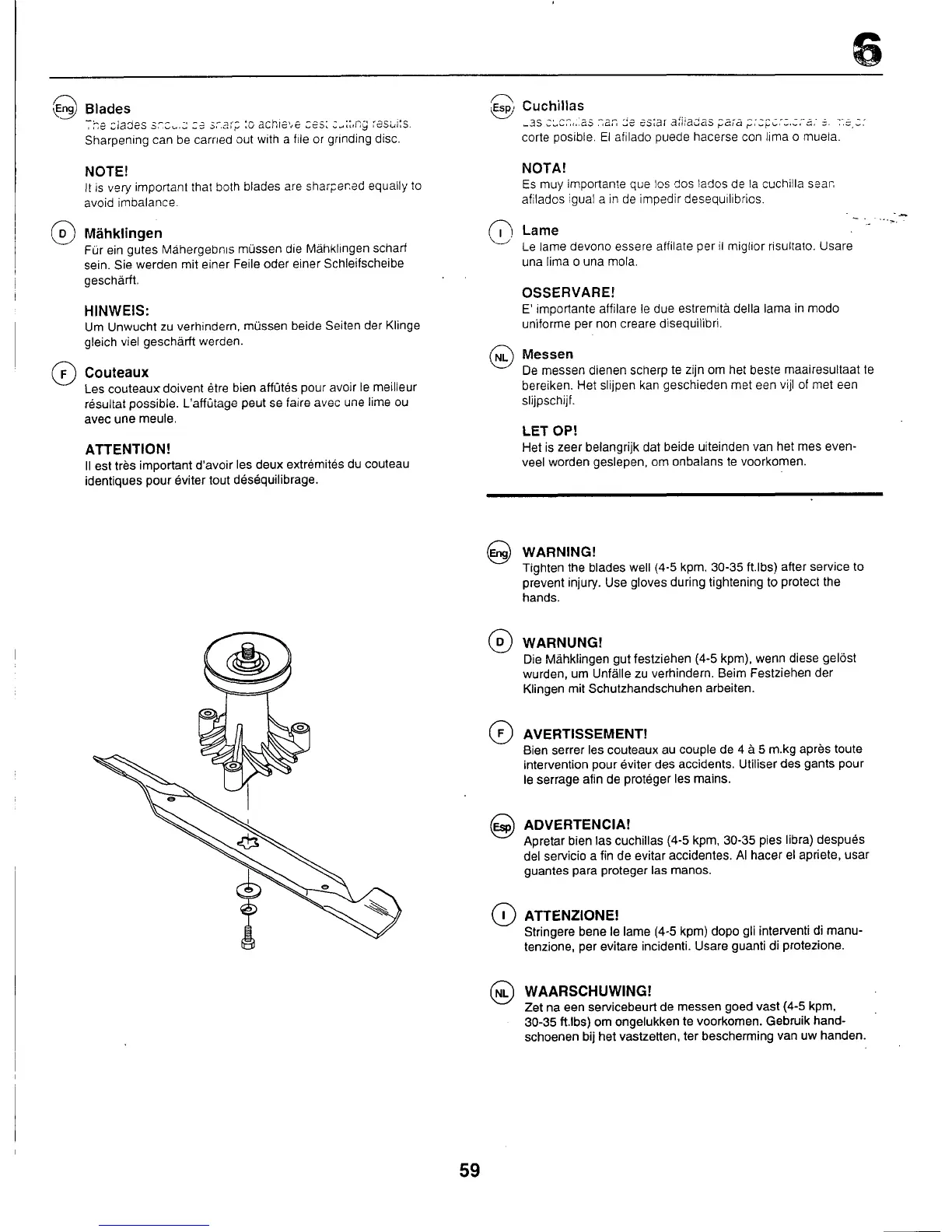 Husqvarna YTH160 - Blades; BLADE MAINTENANCE AND SHARPENING