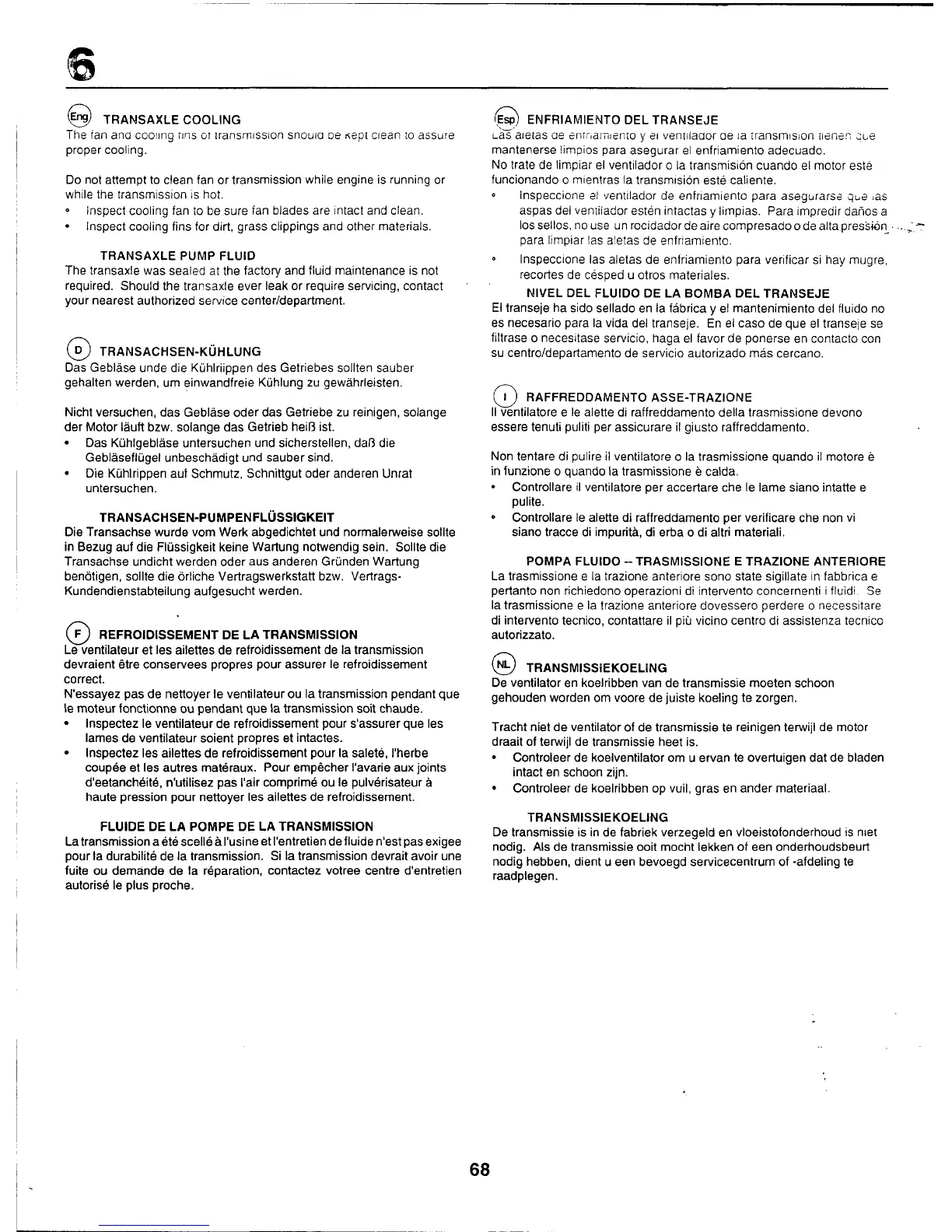 Husqvarna YTH160 - Transaxle Cooling; Transaxle Pump Fluid