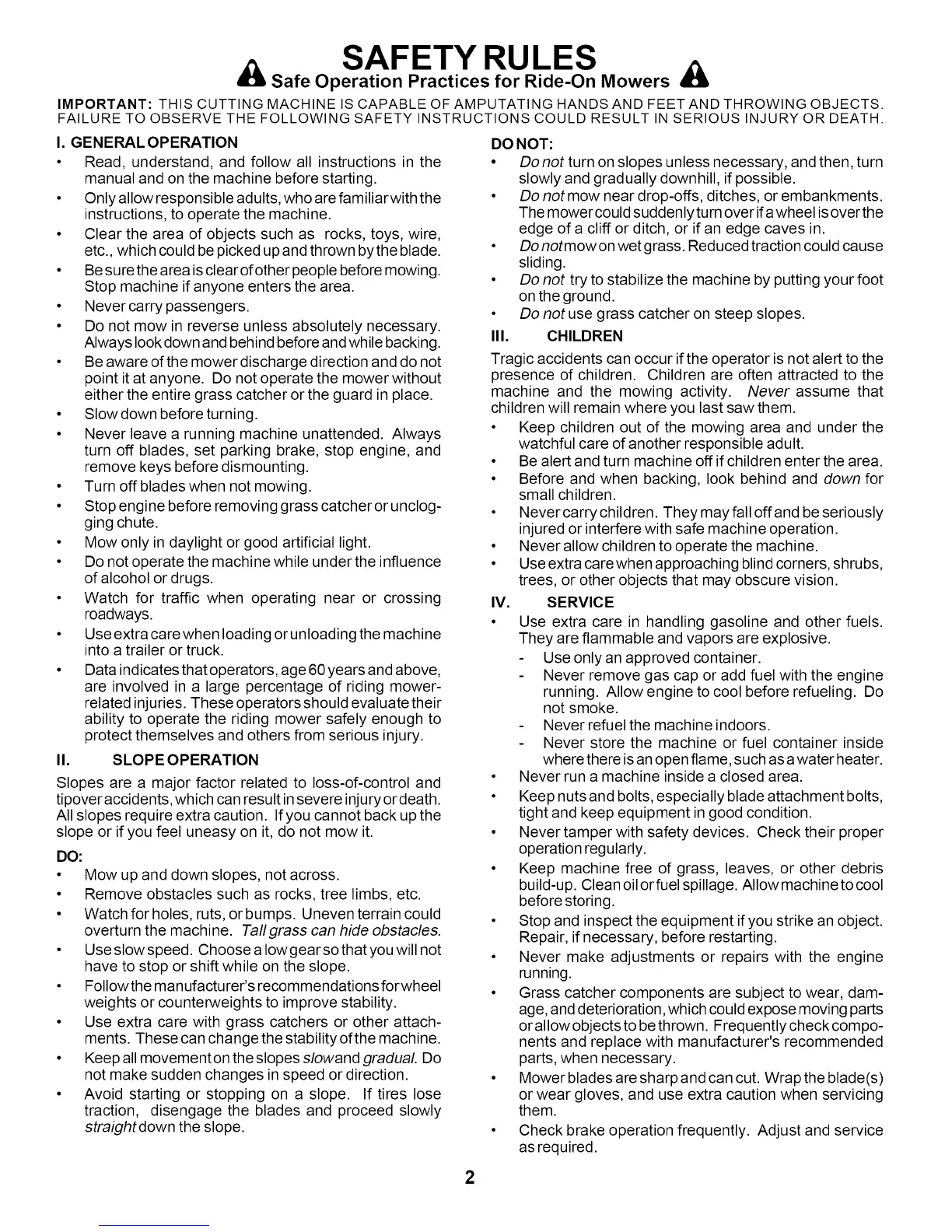 • Mower blades are sharp and can cut. Wrap the blade(s)