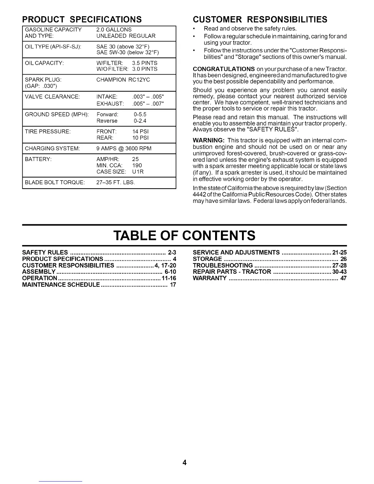 CUSTOMER RESPONSIBILITIES ...................... 4, 17-20