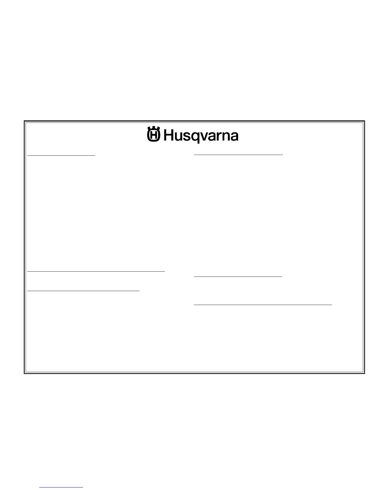 properly filled out and mailed to Husqvarna Forest & Garden Company. This card should be mailed within