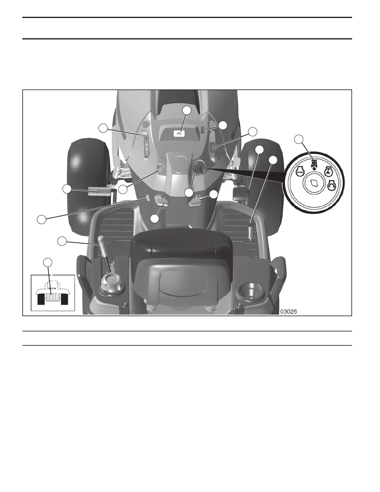 (F) IGNITION SWITCH - Used for starting and stopping the