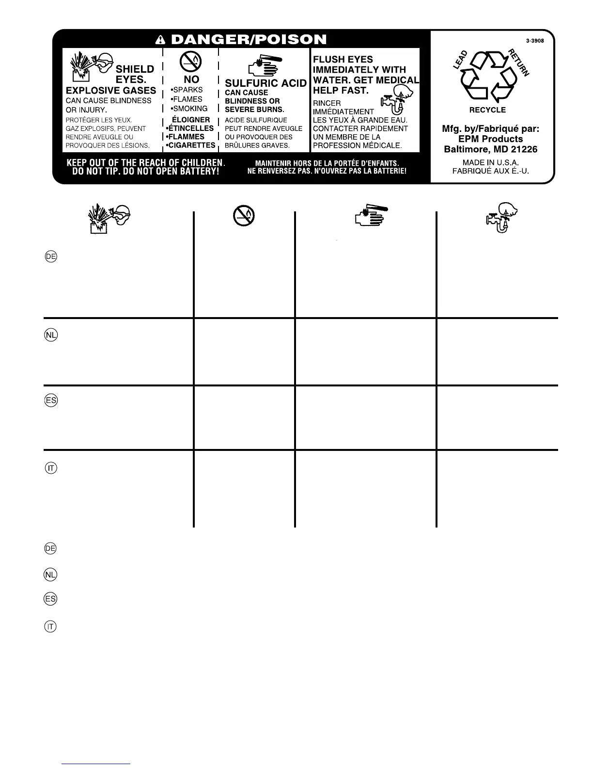 TENERE LONTANO DALLA PORTATA DEI BAMBINI. NON INCLINARE. NON APRIRE LA BATTERIA!