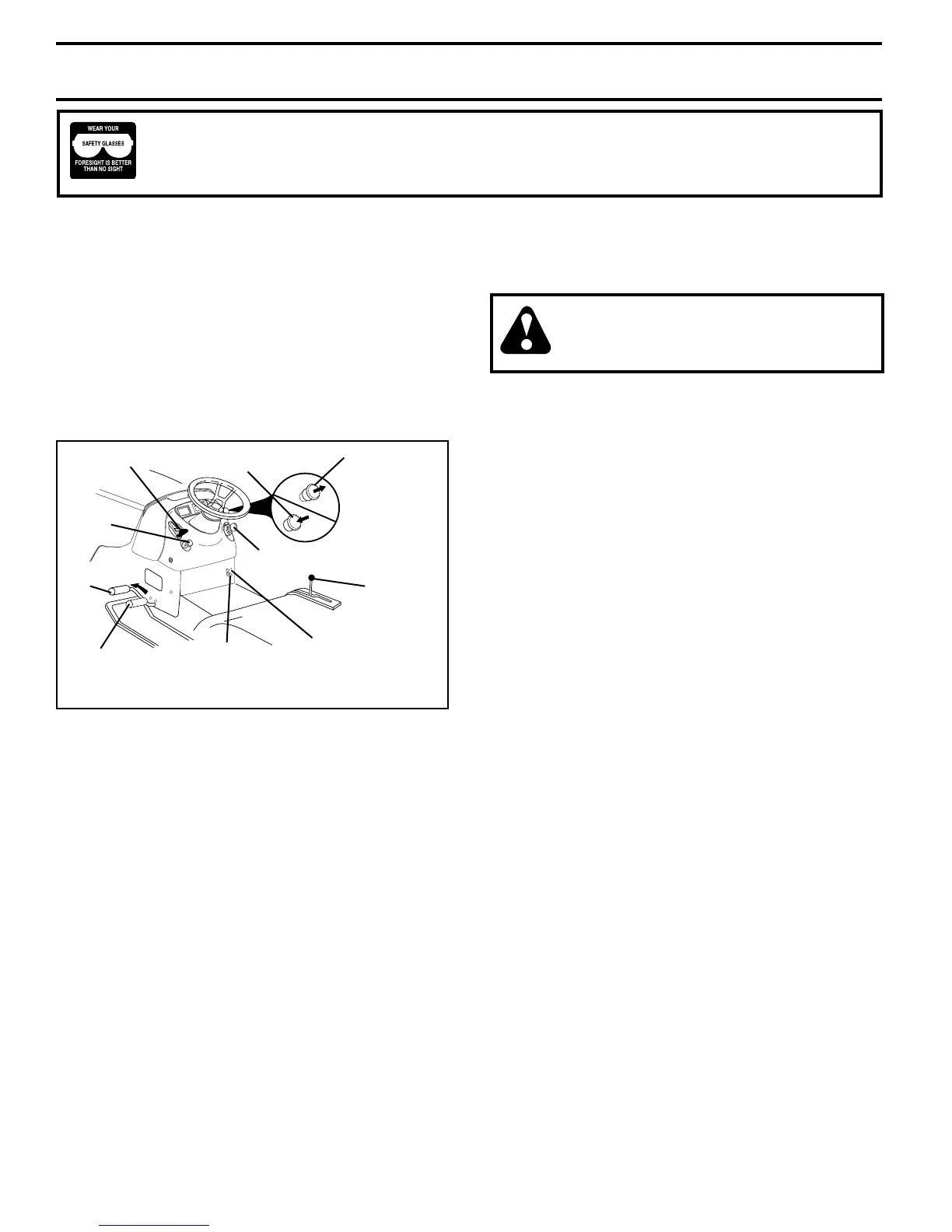 in severe eye dam age. Always wear safety glass es or eye shields while operating your tractor or
