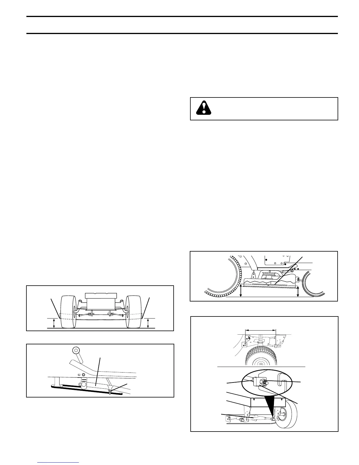 level at front cor ners of mower. Distance “A” on both