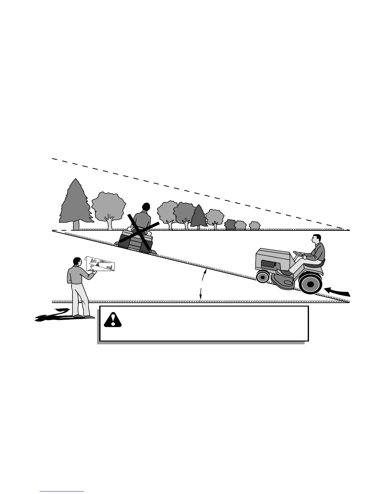 down the face of slopes, never across the face. Do not mow