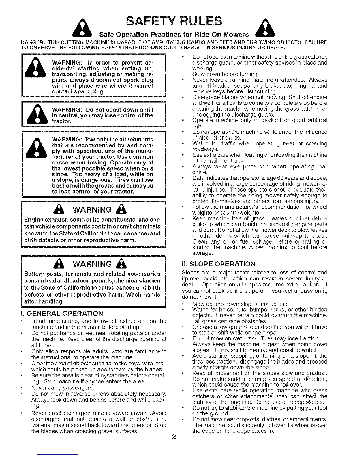death. Operation on all slopes requires extra caution. If