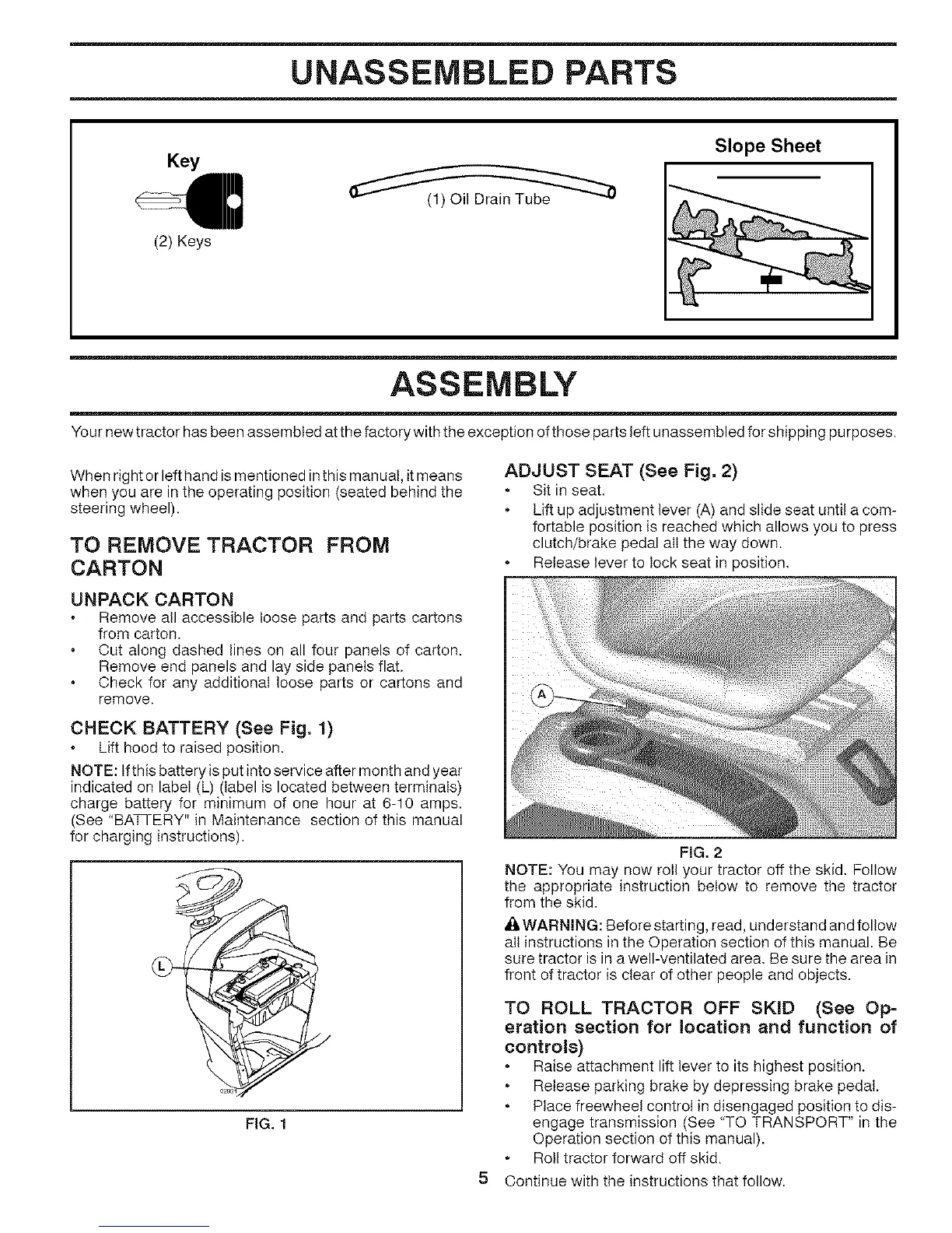 Your new tractor has been assembled at the factory with the exception of those parts left unassembled for shipping purposes.