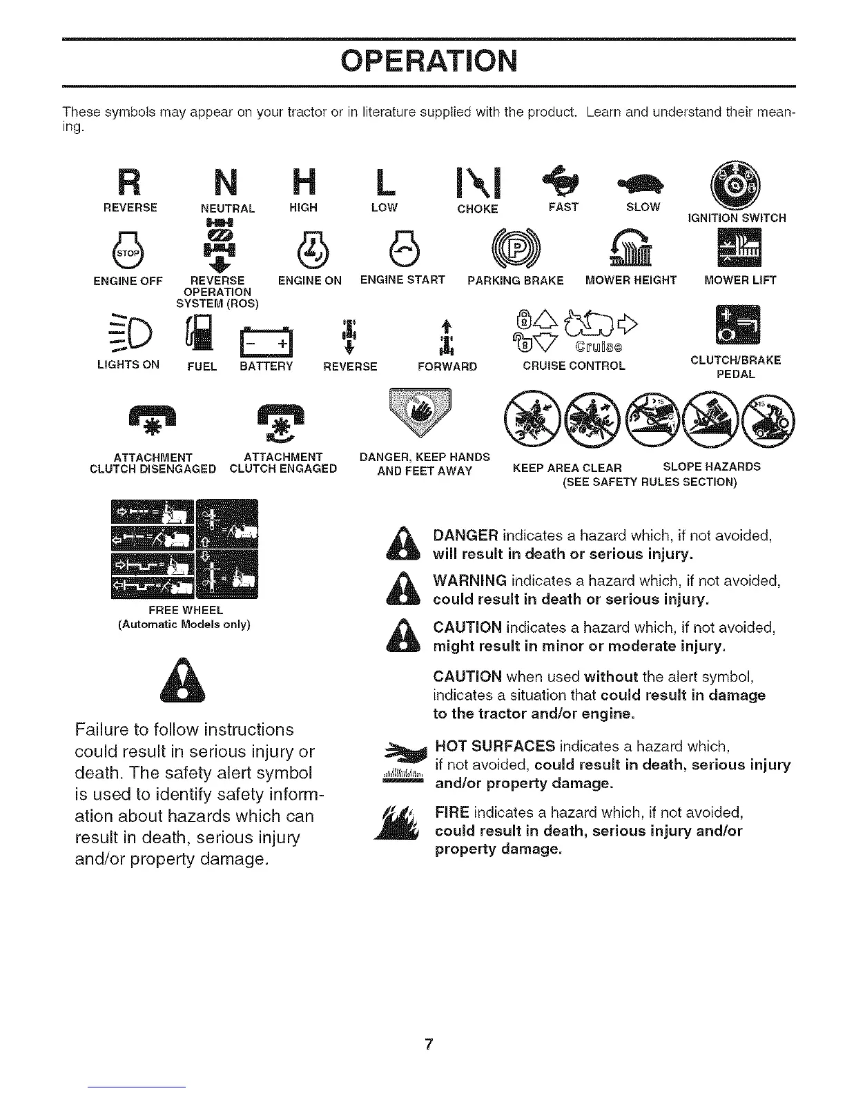 These symbols may appear on your tractor or in literature supplied with the product, Learn and understand their mean-