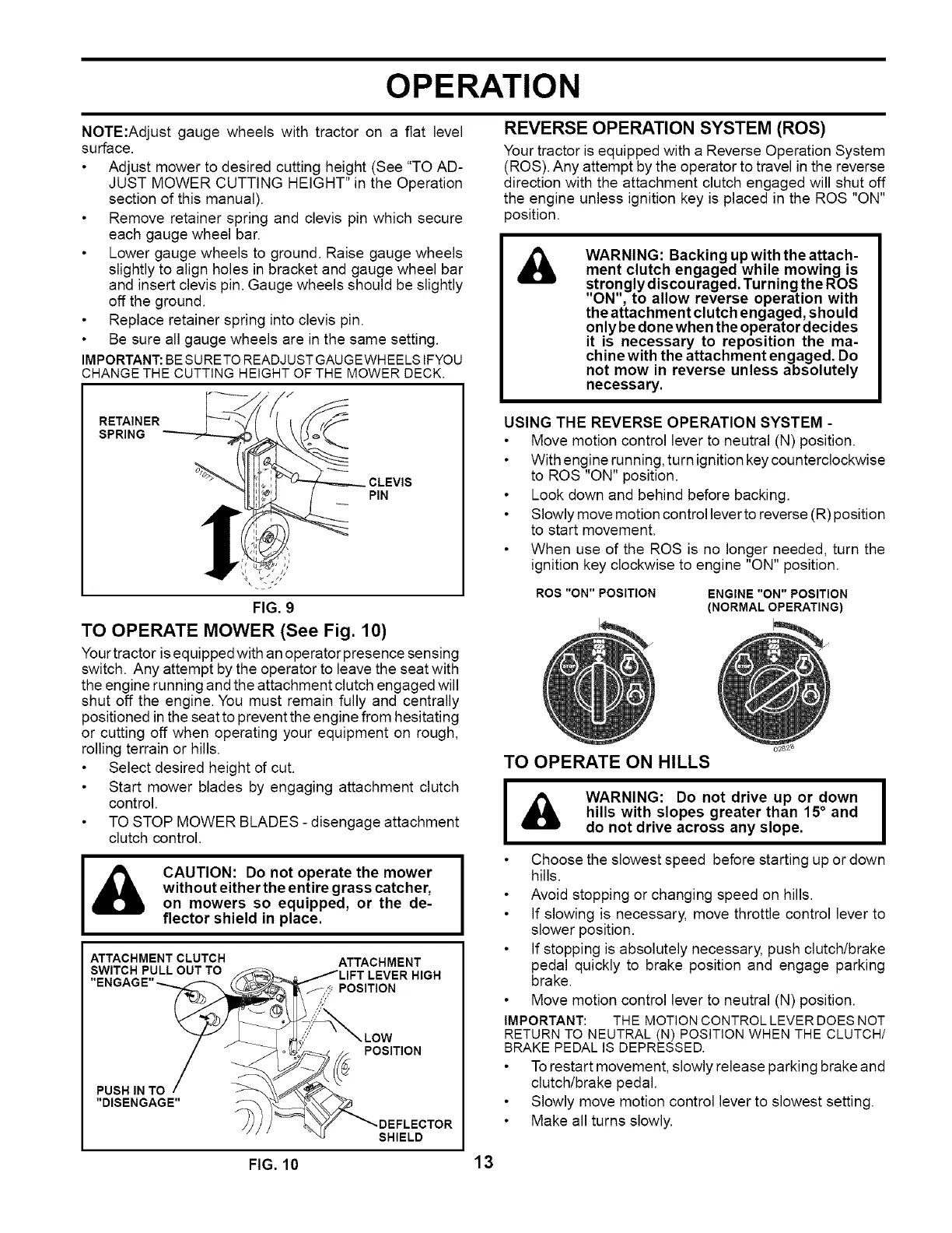 JUST MOWER CUTTING HEIGHT" in the Operation