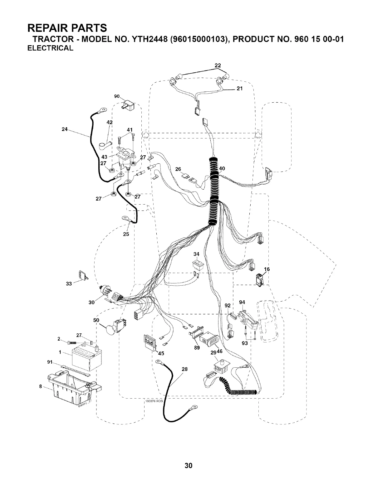 TRACTOR - MODEL NO. YTH2448 (96015000103), PRODUCT NO. 960 15 00-01