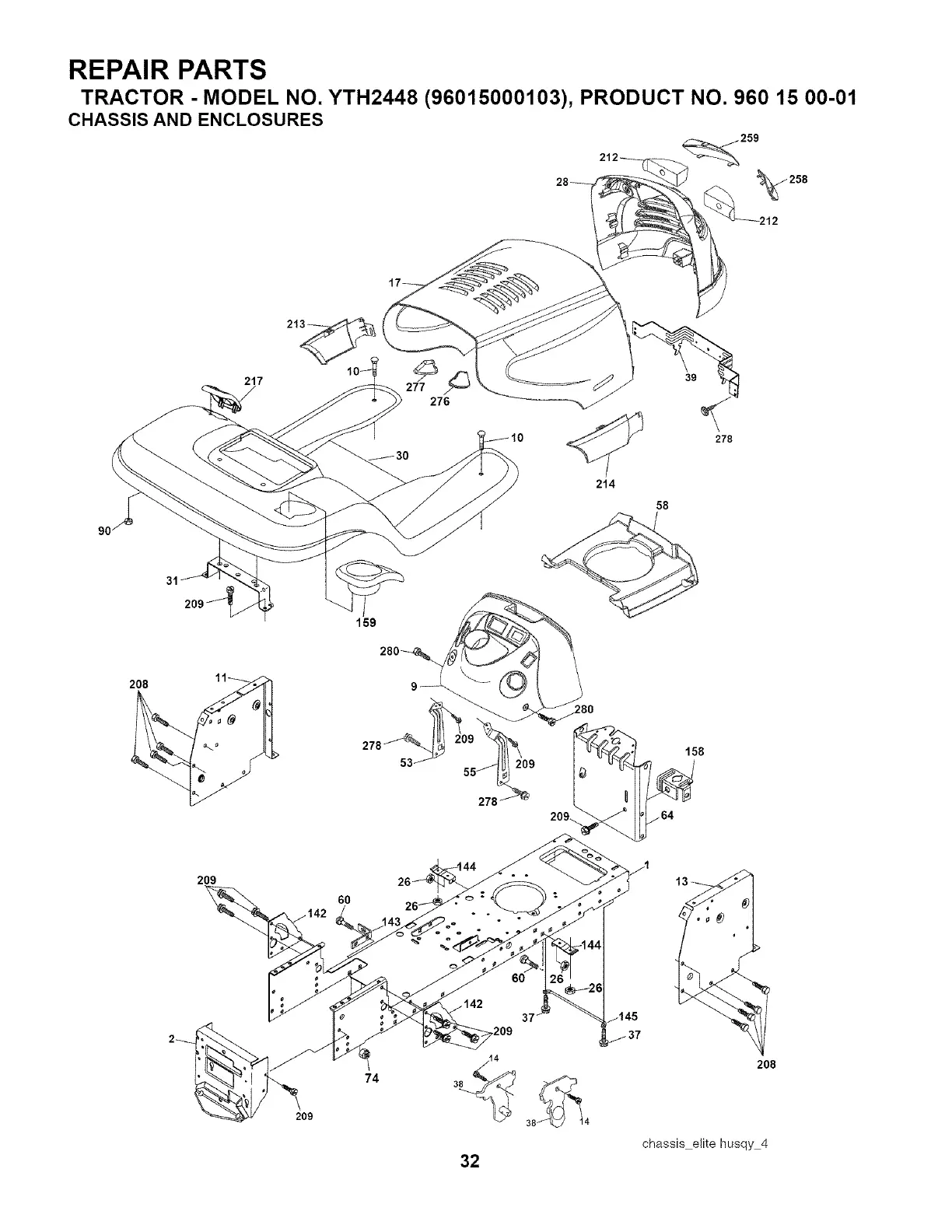 TRACTOR - MODEL NO. YTH2448 (96015000103), PRODUCT NO. 960 15 00-01