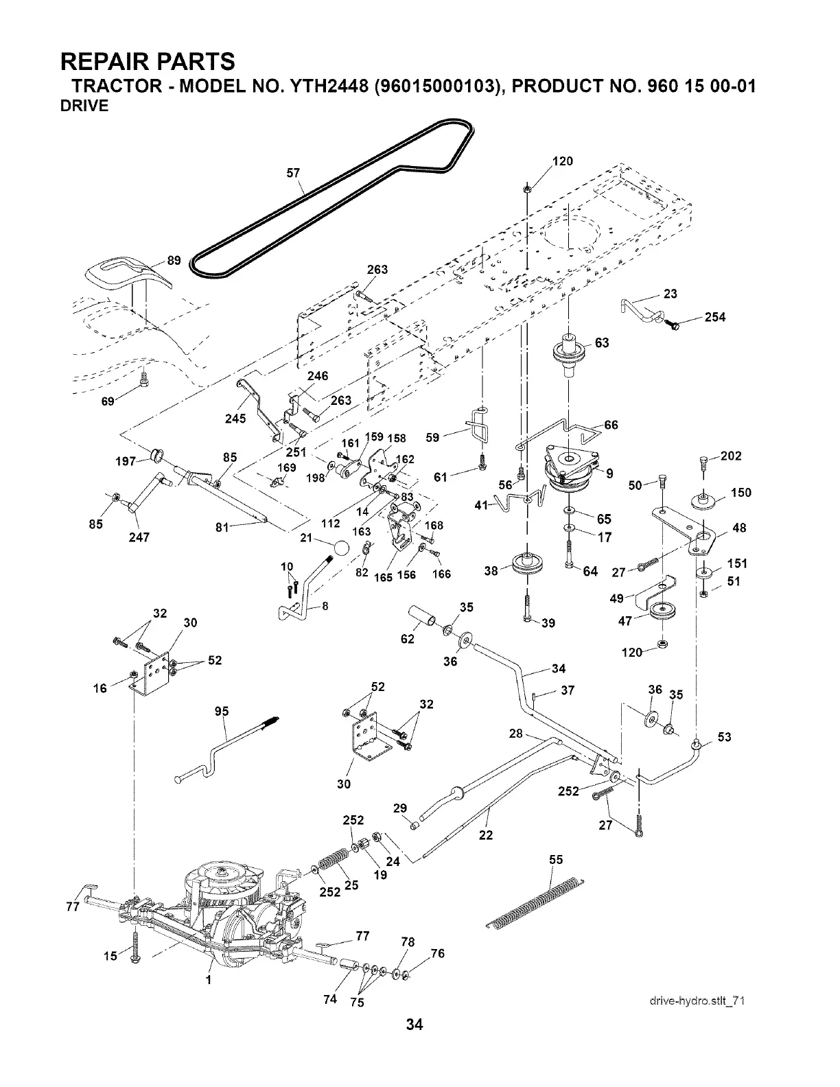 TRACTOR . MODEL NO. YTH2448 (96015000103), PRODUCT NO. 960 15 00-01