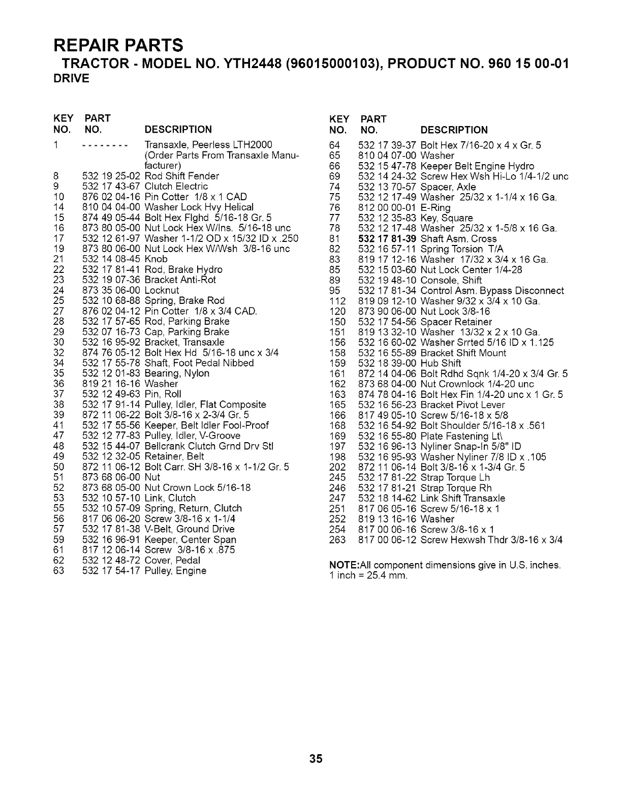 TRACTOR - MODEL NO. YTH2448 (96015000103), PRODUCT NO. 960 15 00-01