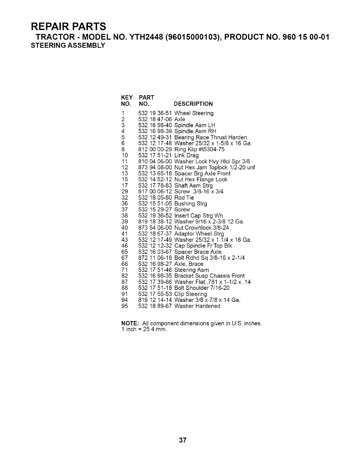 TRACTOR - MODEL NO. YTH2448 (96015000103), PRODUCT NO. 960 15 00-01