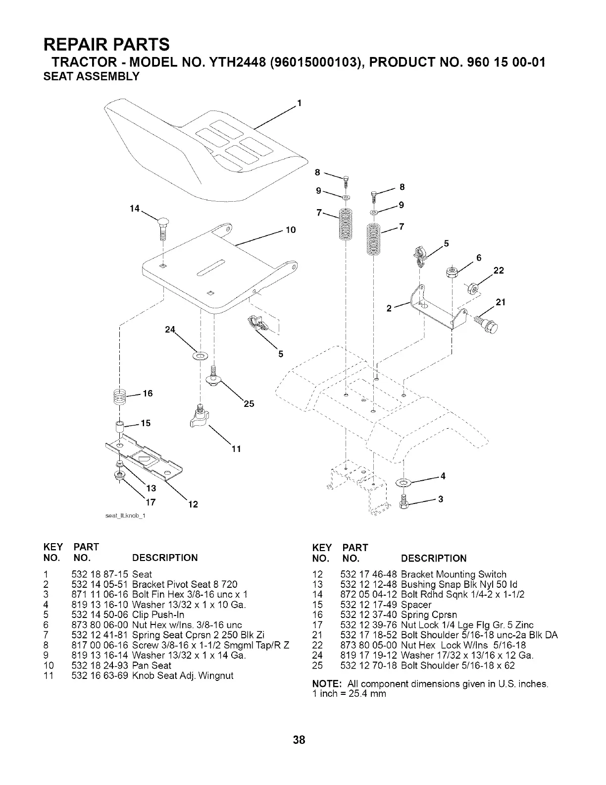 TRACTOR - MODEL NO. YTH2448 (96015000103), PRODUCT NO. 960 15 00-01