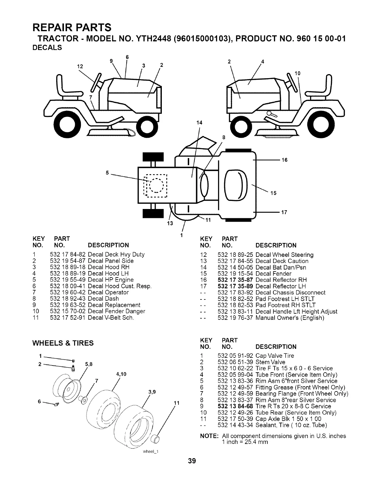 TRACTOR - MODEL NO. YTH2448 (96015000103), PRODUCT NO. 960 15 00-01