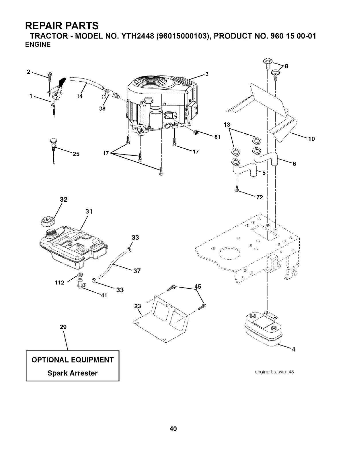 TRACTOR - MODEL NO. YTH2448 (96015000103), PRODUCT NO. 960 15 00-01