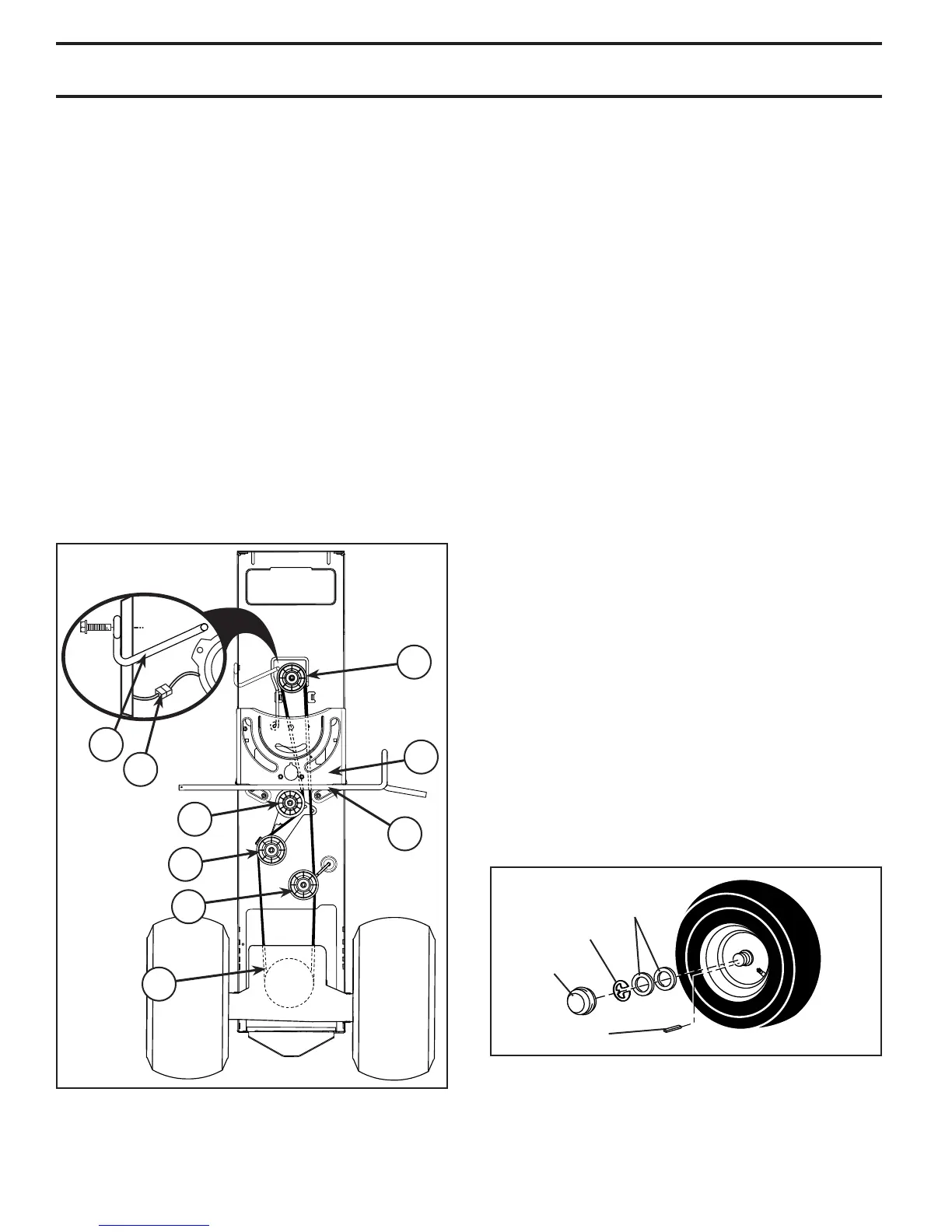 • Install new belt from tractor rear to front, over the steer-