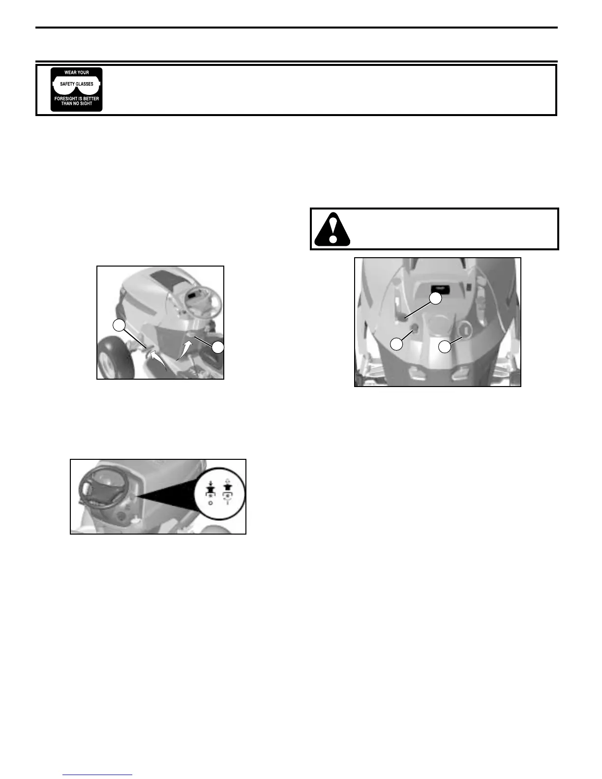 in severe eye dam age. Always wear safety glass es or eye shields while operating your tractor