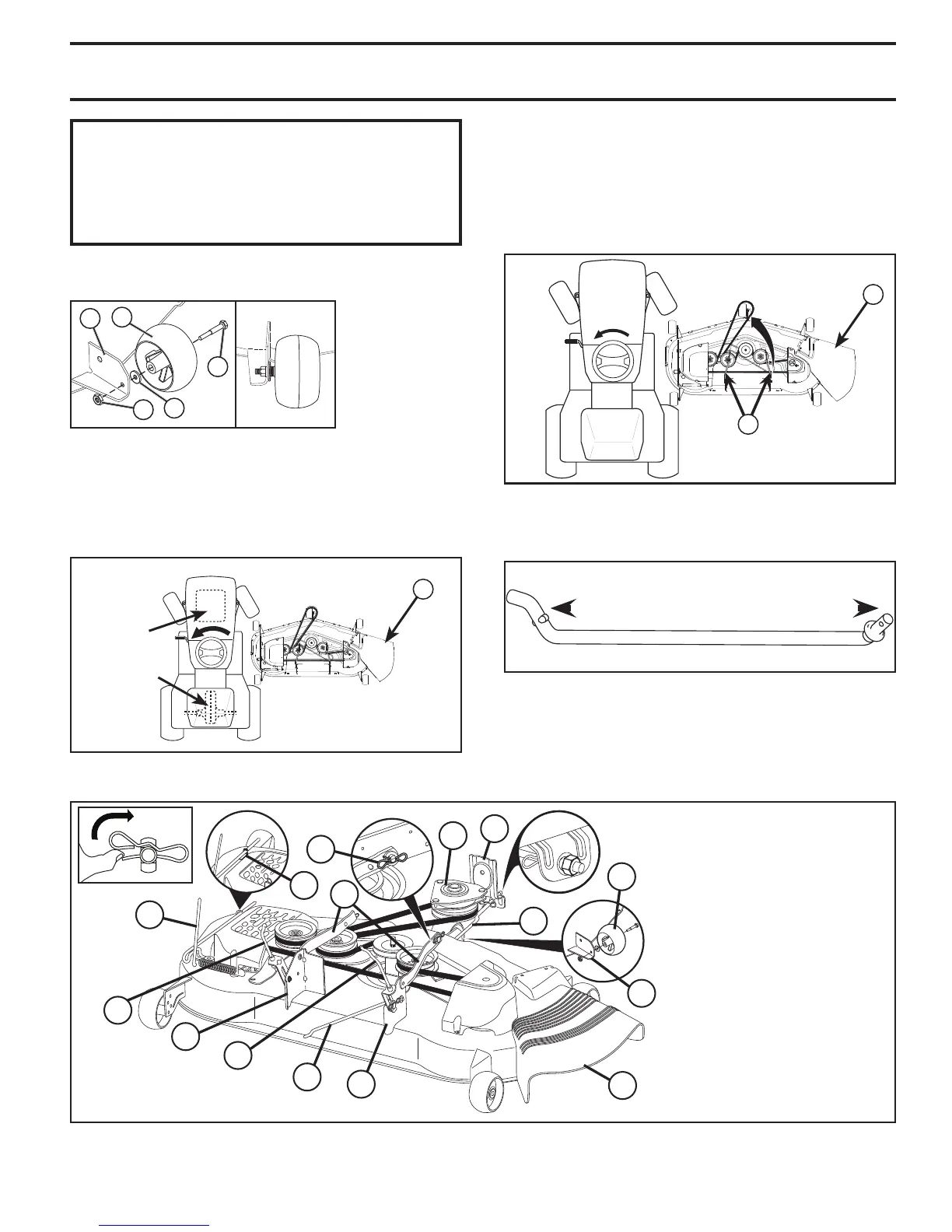 • Slide mower under tractor until it is centered under