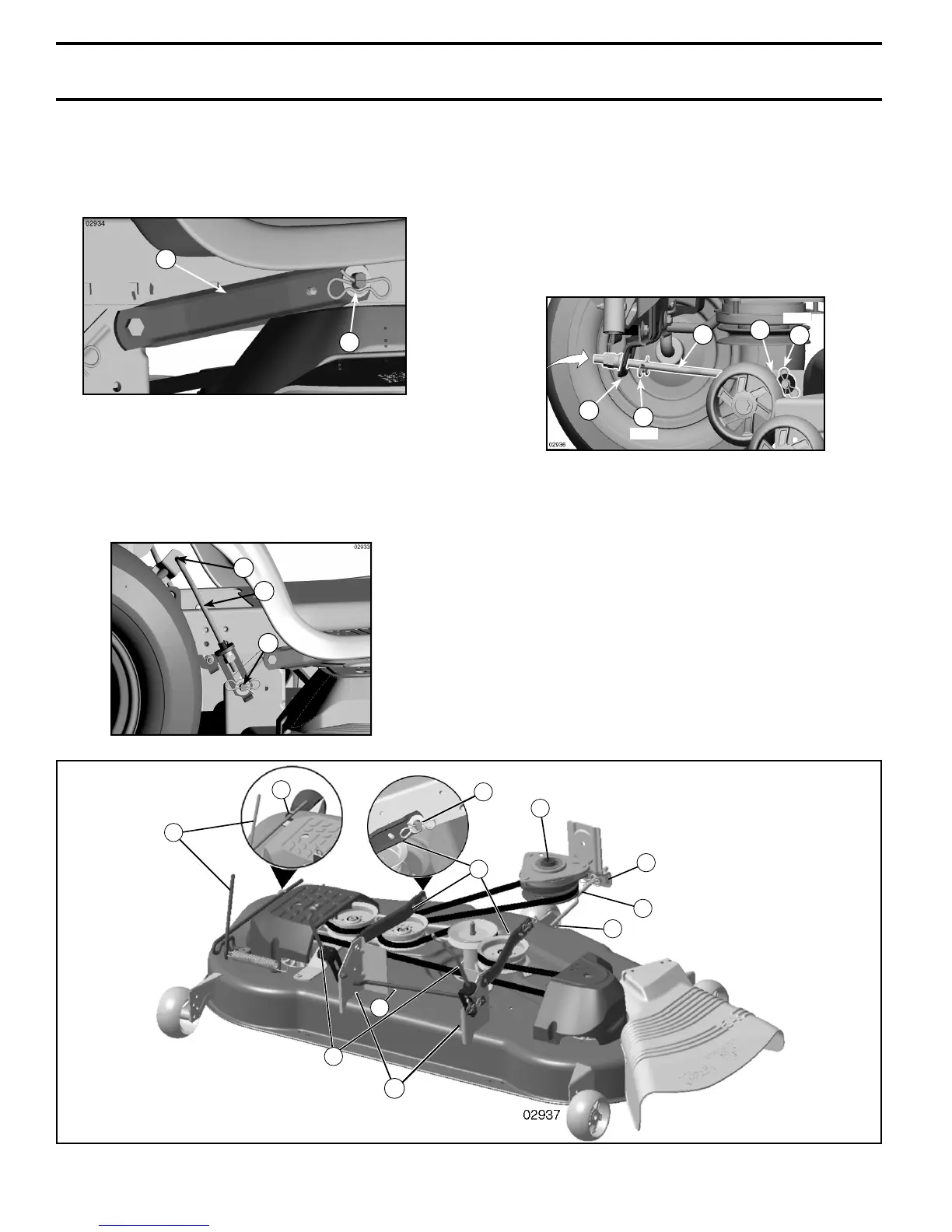 (L) and pivot link down to mower. Lift rear corner of