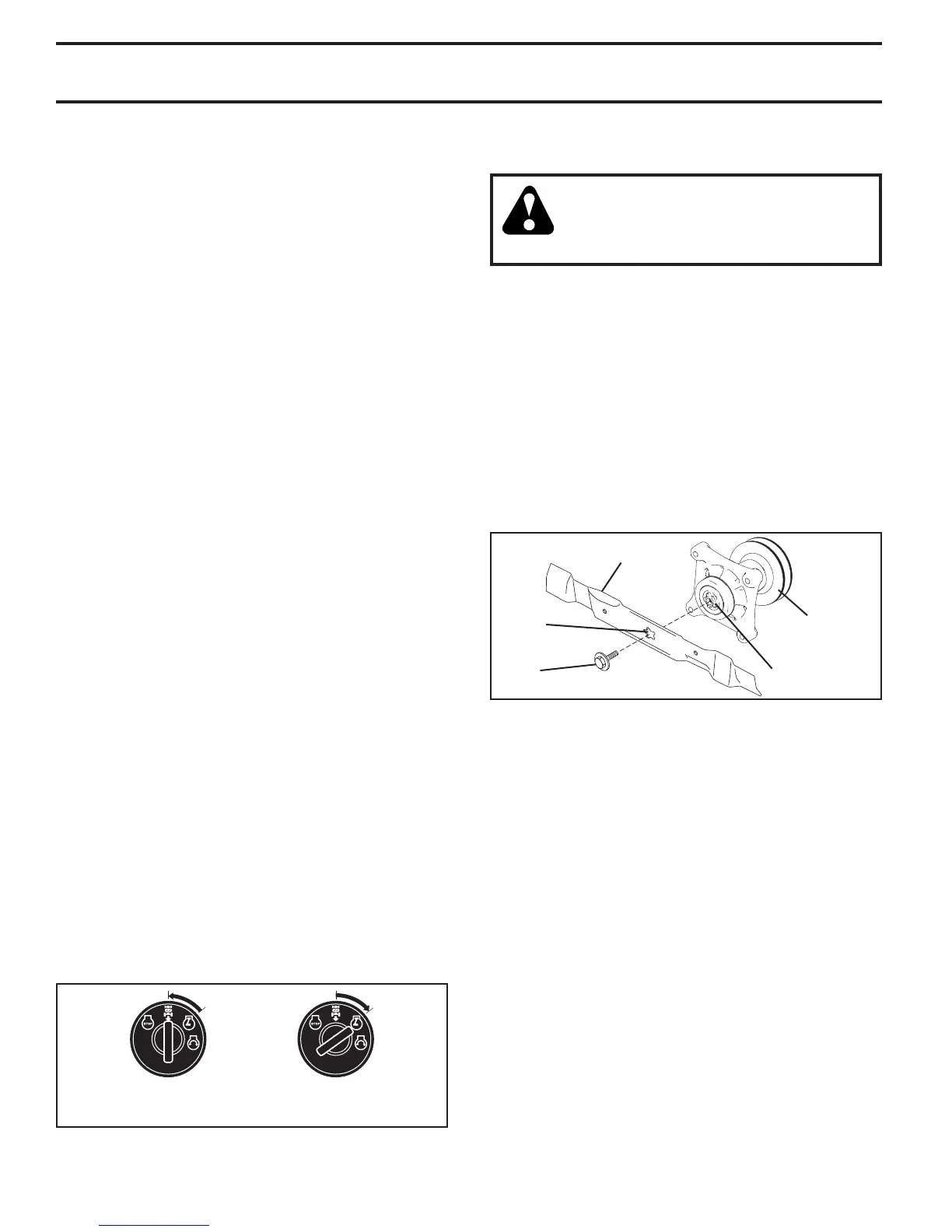 • Install and tighten blade bolt securely (45-55 Ft. Lbs./