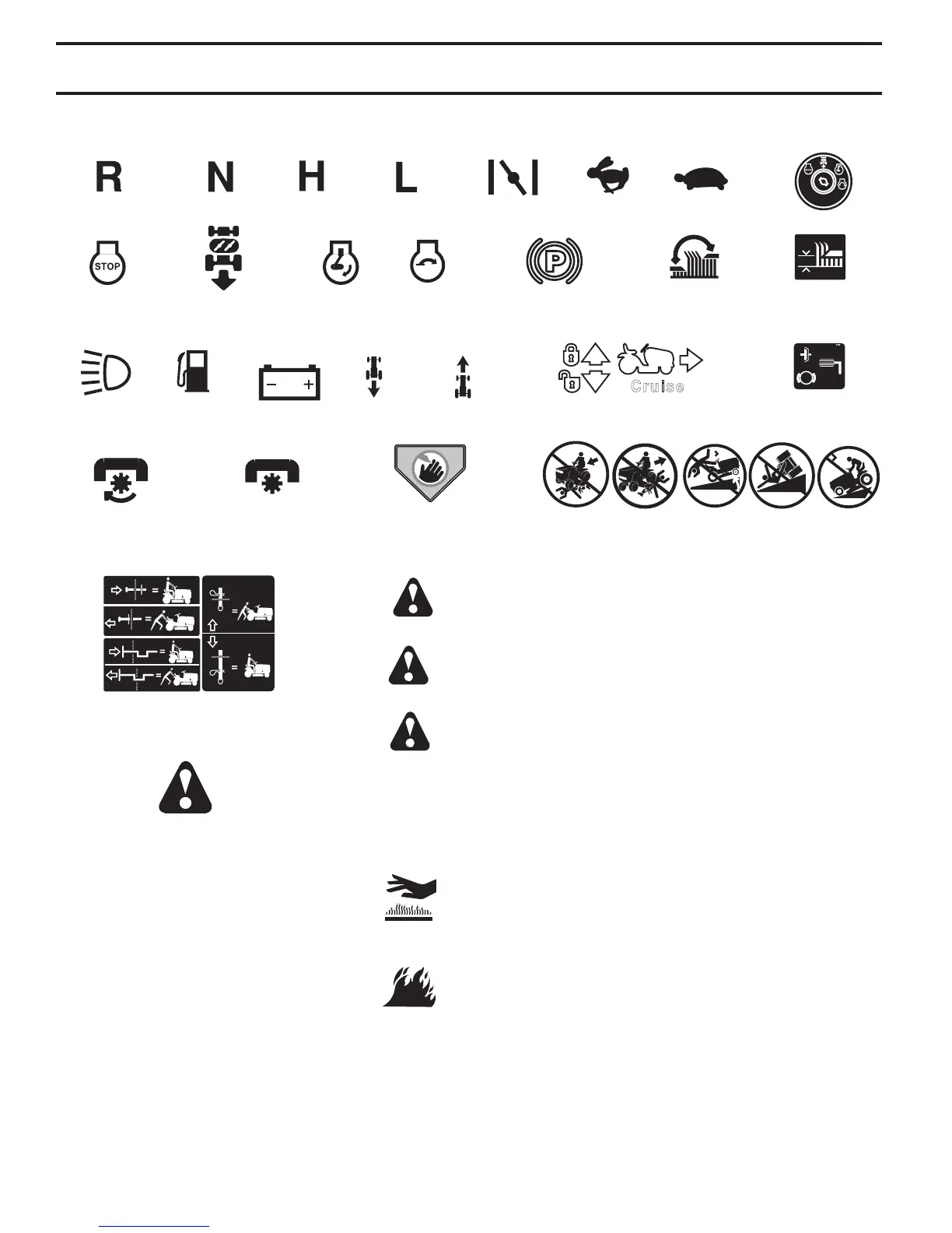 Ces symboles peuvent se montrer sur votre tracteur ou dans les publications fournies avec le produit. Apprenez et comprenez la