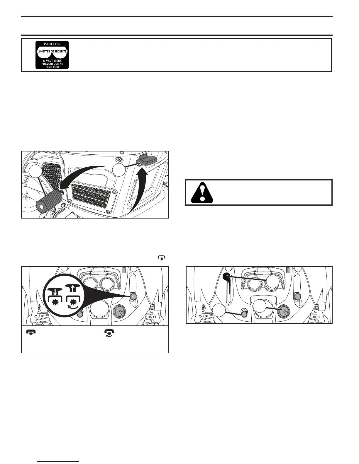 que vous utilisez, ou que vous faites des réglages ou des réparations au tracteur. Nous recom-