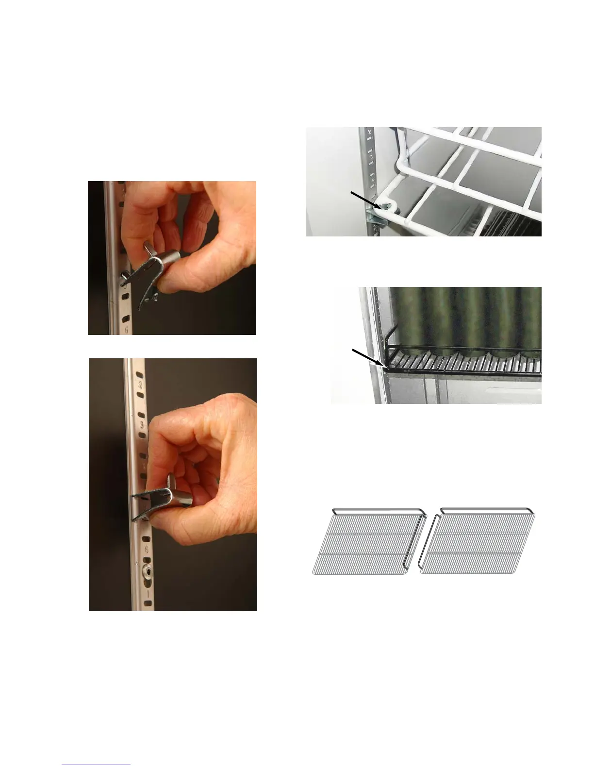 For flat wire shelves, position shelf clips at the