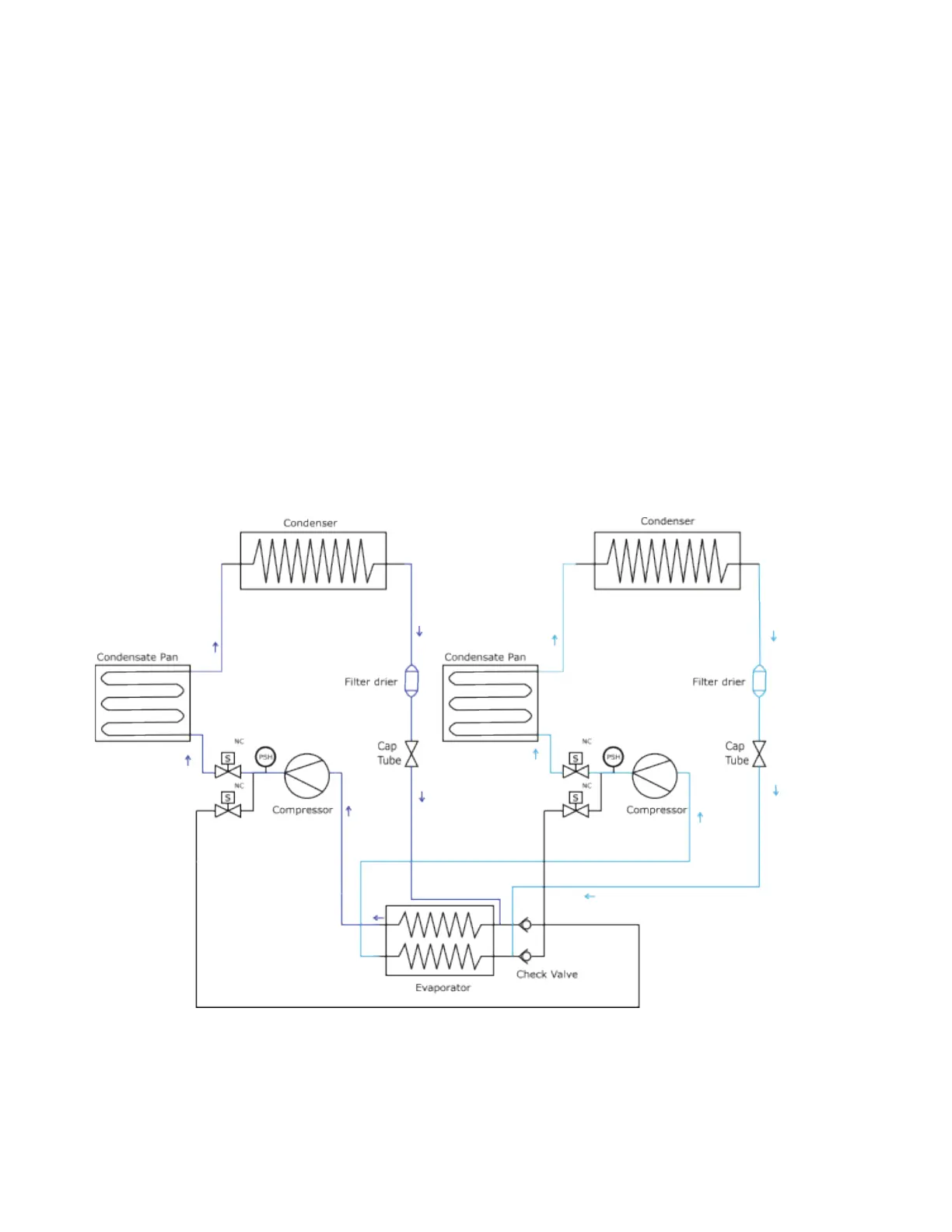 each evaporator. The darker arrows and