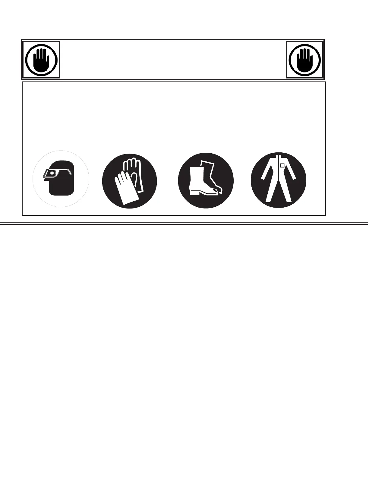 equipment. Always wear safety glasses, gloves, protective boots or shoes, long pants, and