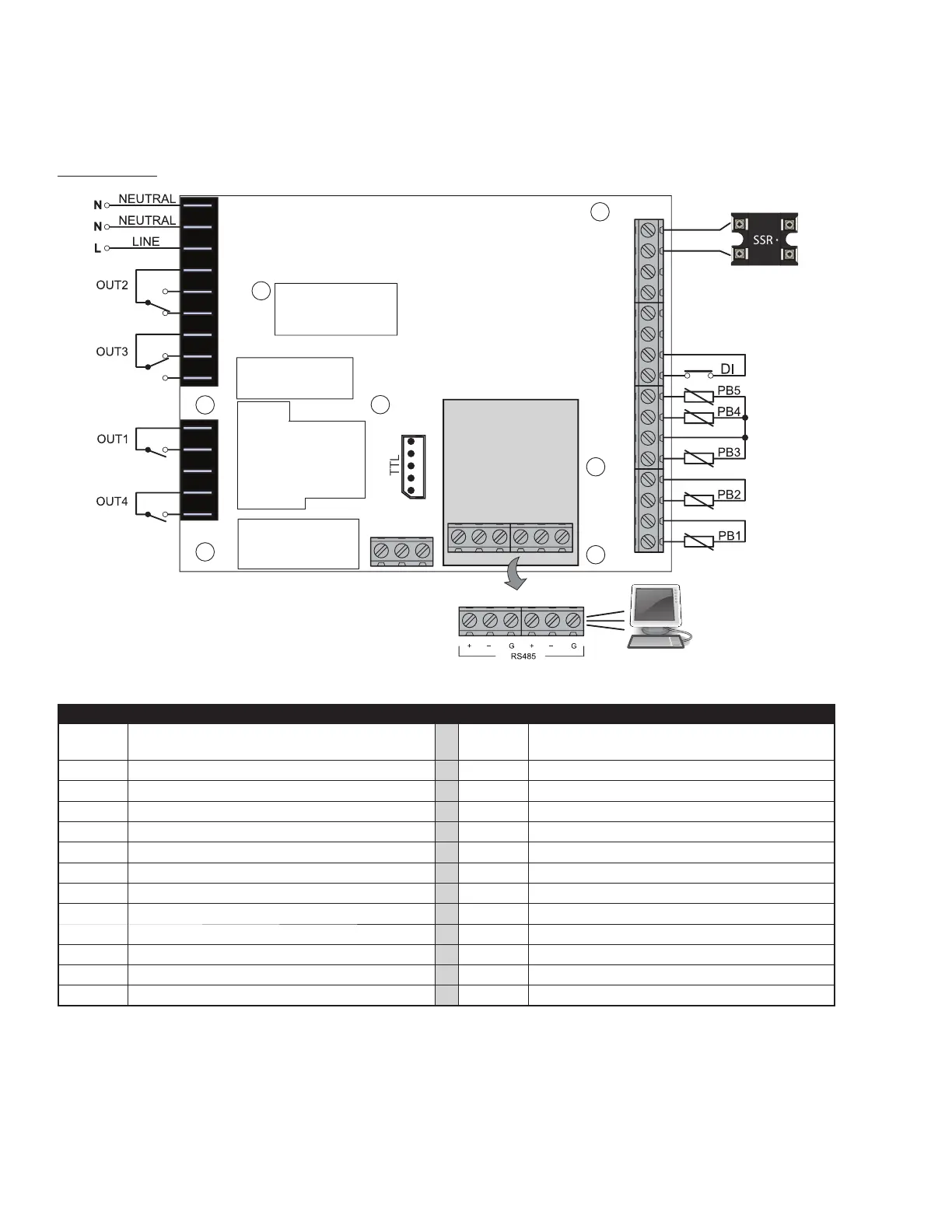 * N.B.: analogue inputs PB1...PB5 can also be configured as Digital Inputs DI.