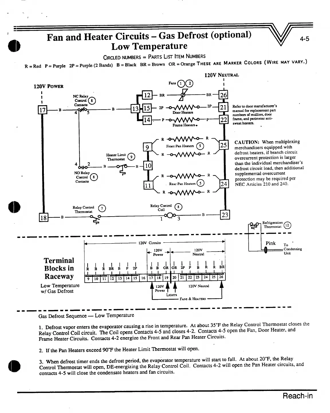 Hussmann NRCV - FAN AND HEATER CIRCUITS - GAS DEFROST (OPTIONAL) LOW TEMPERATURE