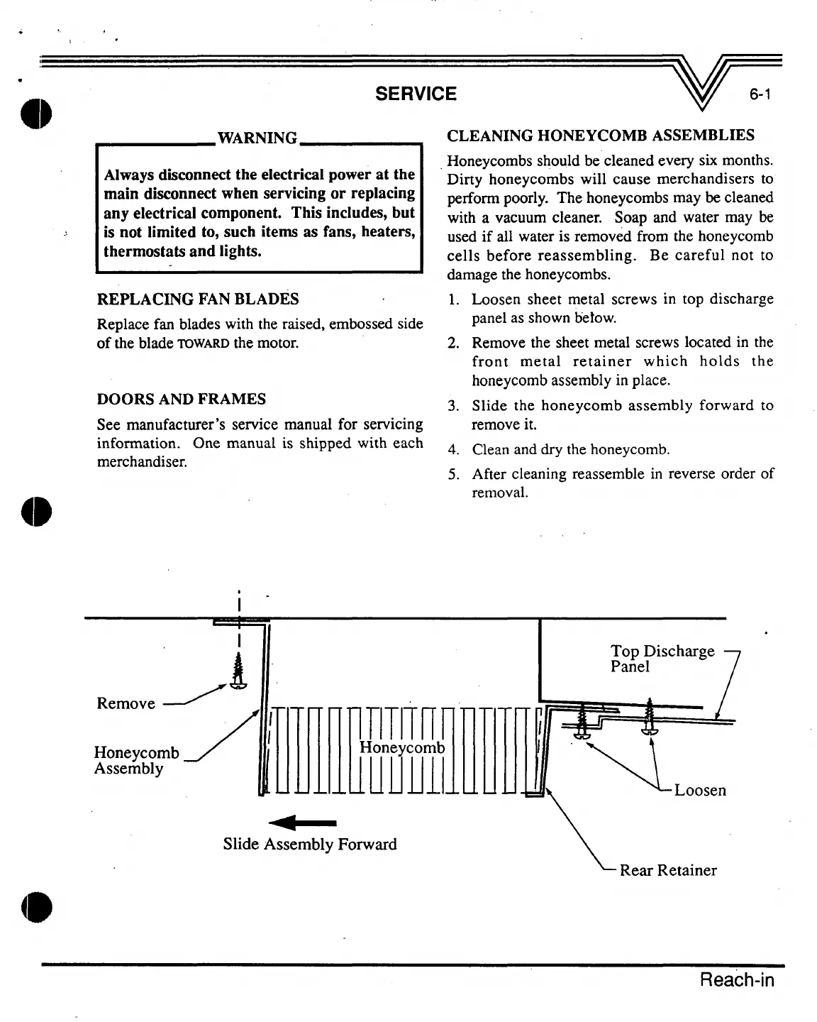 Hussmann NRCV - SERVICE; REPLACING FAN BLADES; CLEANING HONEYCOMB ASSEMBLIES
