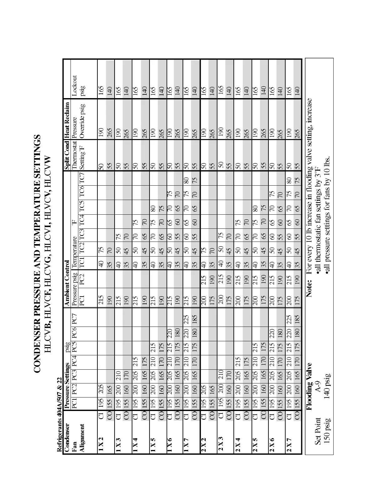 CONTROL SETTINGS Revised August 1, 1996