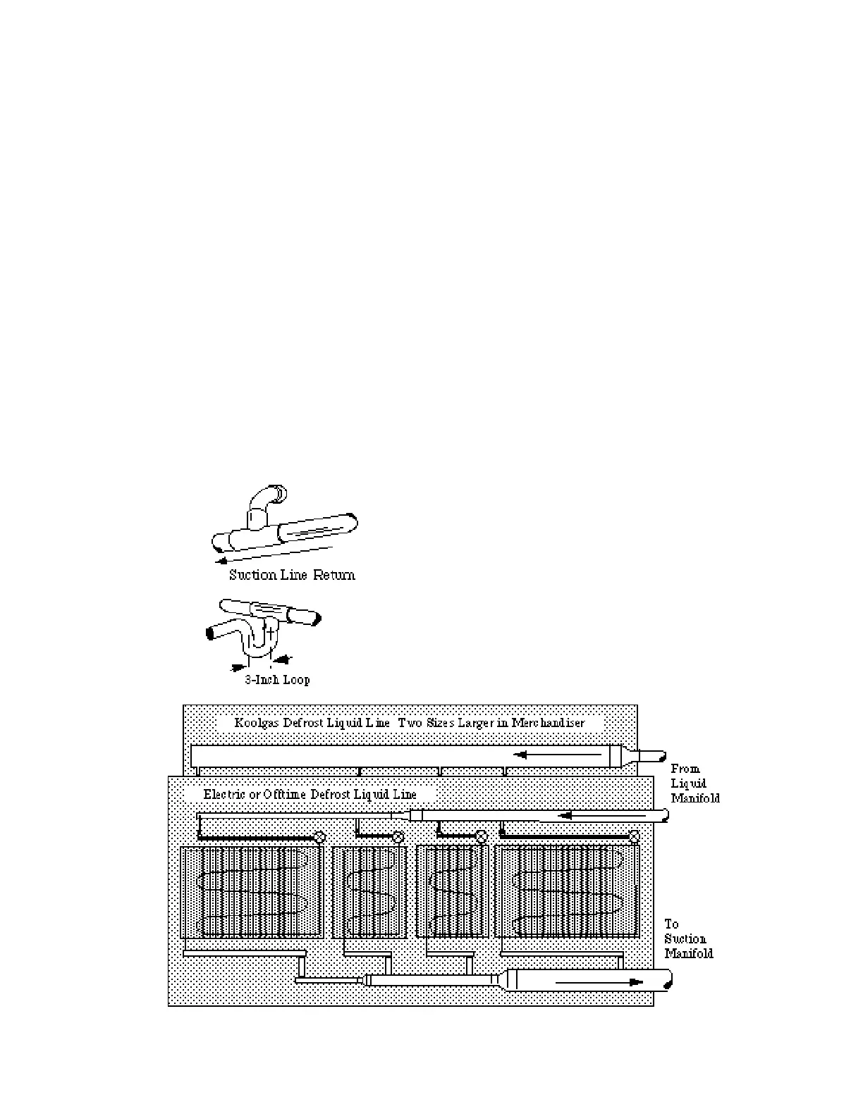 •Suction returns from evaporators enter at the
