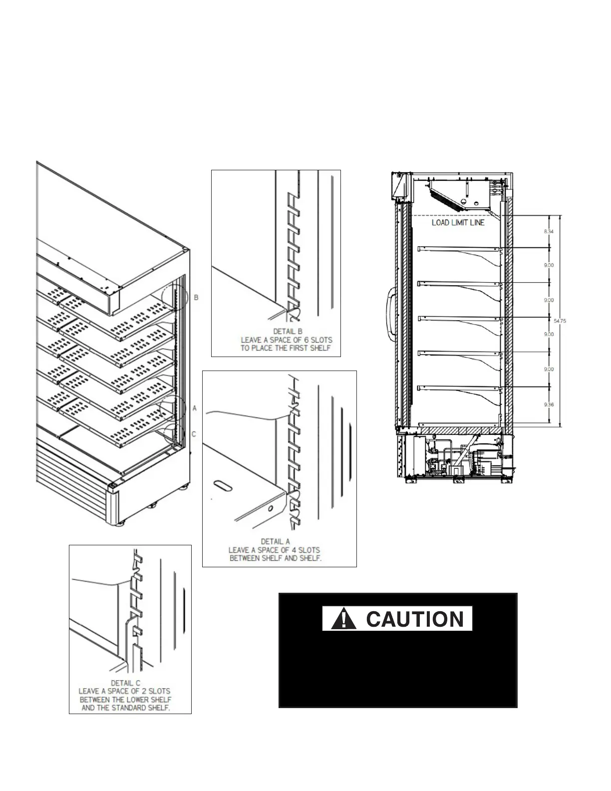 • Leave two slots between the lower shelf and the standard shelf (Detail C).