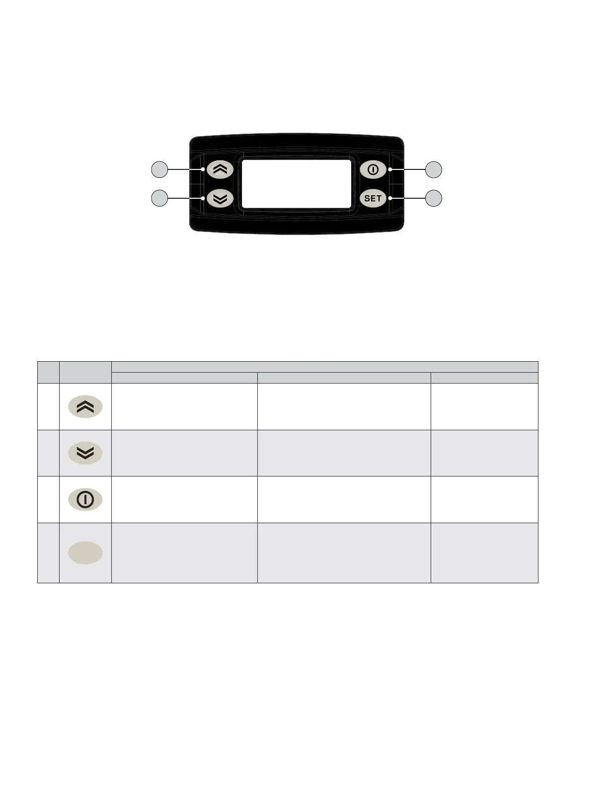 The following table summarizes the function of each key: