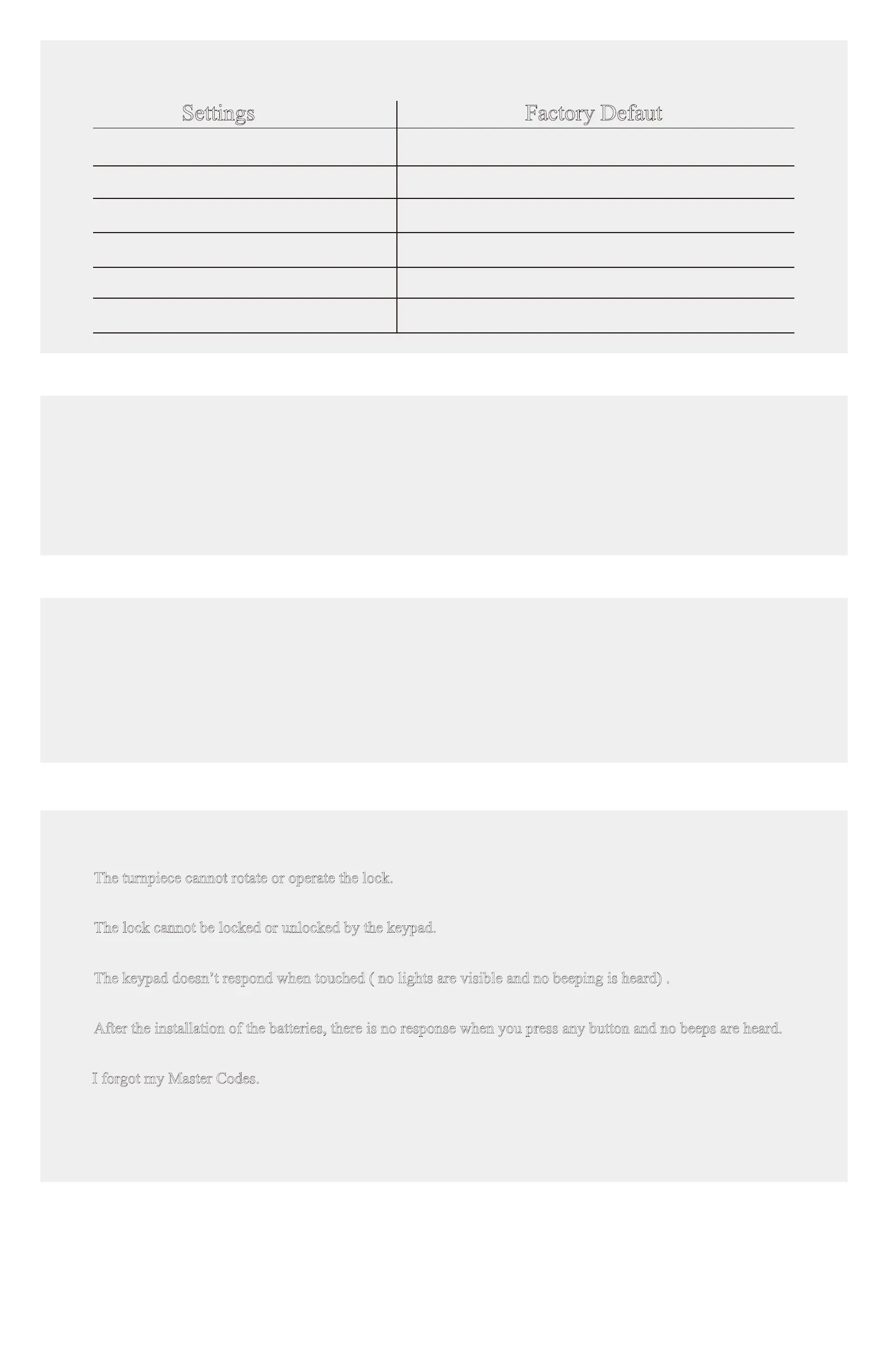 Make sure that the codes are not disabled. If needed, restore the lock’s default settings.