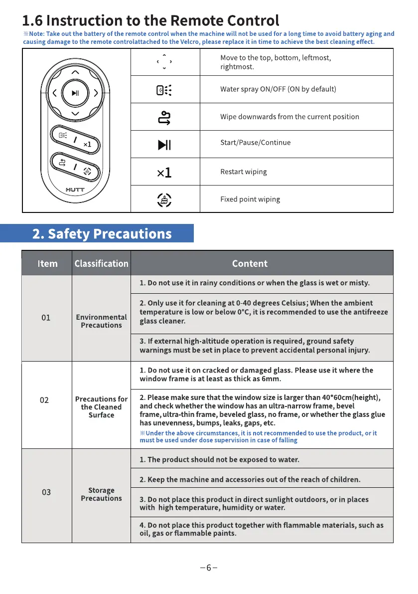 Hutt W8 - Safety Precautions; Environmental Precautions; Precautions for the Cleaned Surface