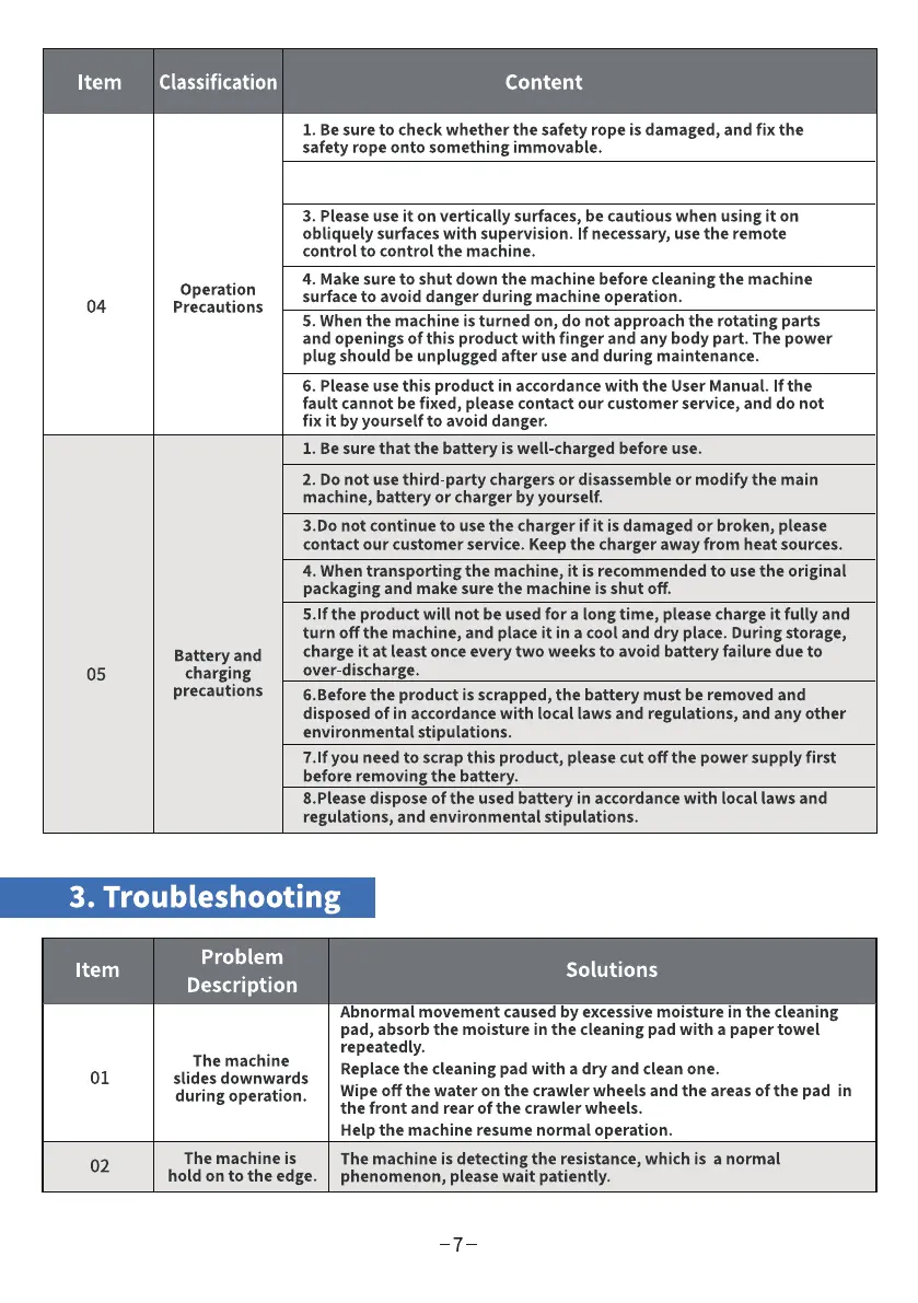 Hutt W8 - Operation Precautions; Battery and Charging Precautions
