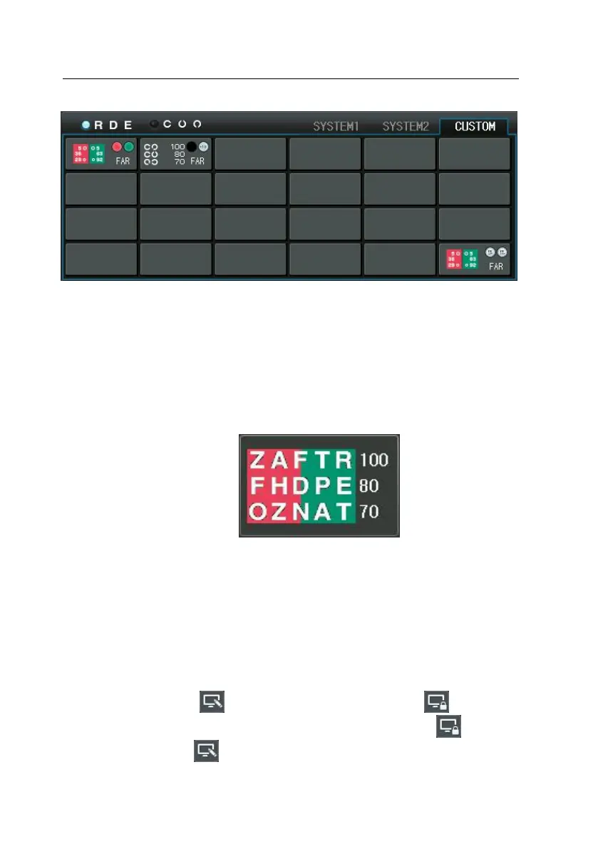 Sets red/green filter on a presented visual acuity chart. Pressing the bu