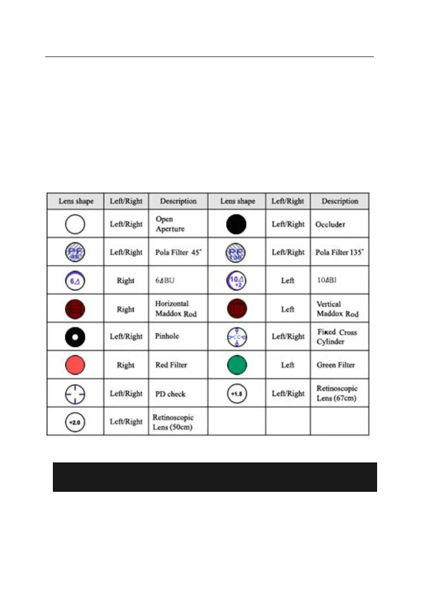 and Red Filter can be placed exclusively in the right eye but 6ΔBU, H