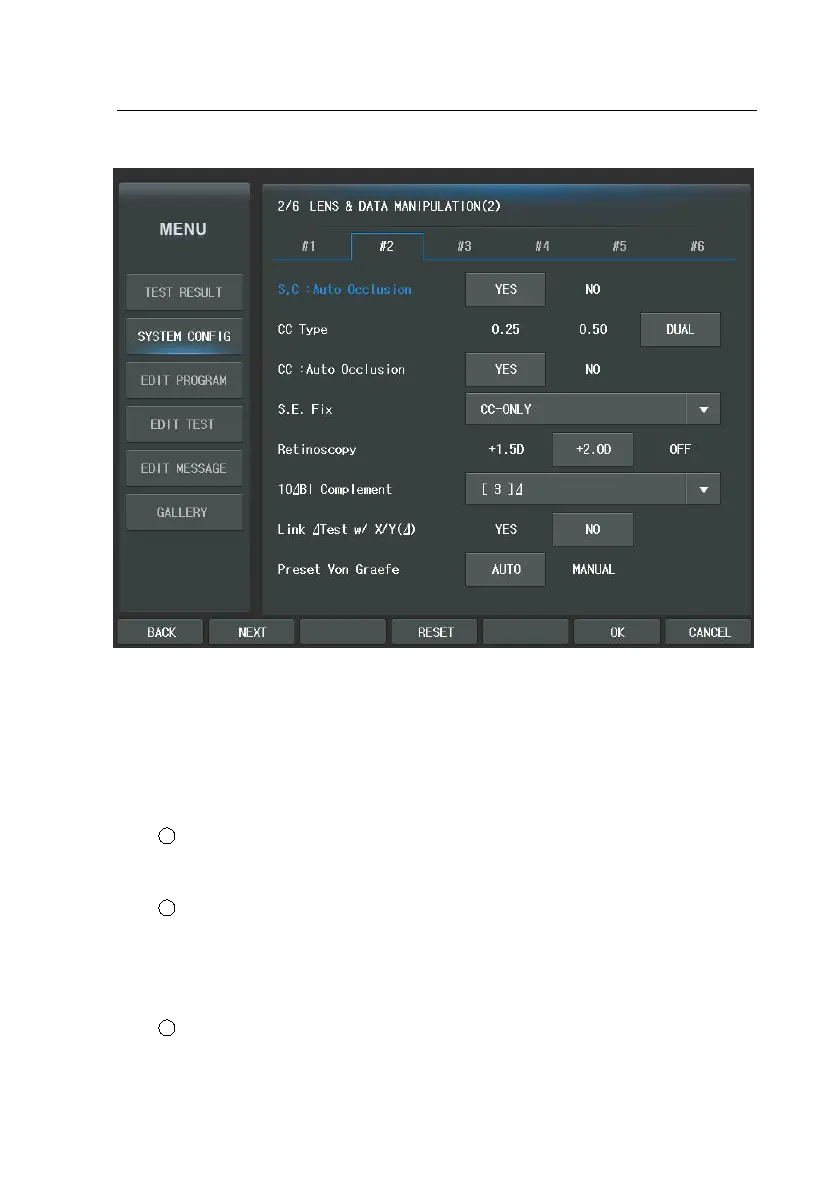 VA Auto Set: assigns the type of chart mask for the unaided visual acuity