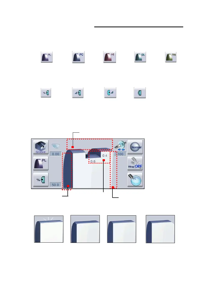 (9) Main Edging Option Icon (Polishing, Safety Beveling, Groove Width/Depth)