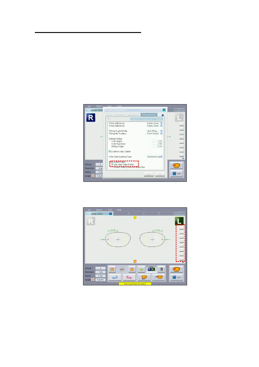 Check Use Hole Data Preset item in the Option Configuration Hole