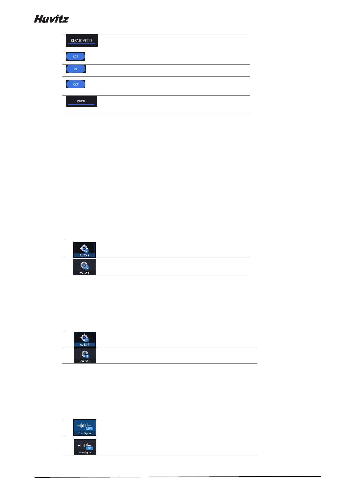• If Keratometer mode is on, user can choose the Keratometry, AxialLength, CCT, ACD, LT measurement.