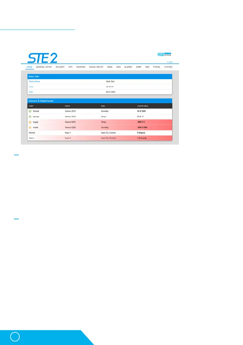 Lists the current values of sensors and digital DI inputs (Dry contacts)