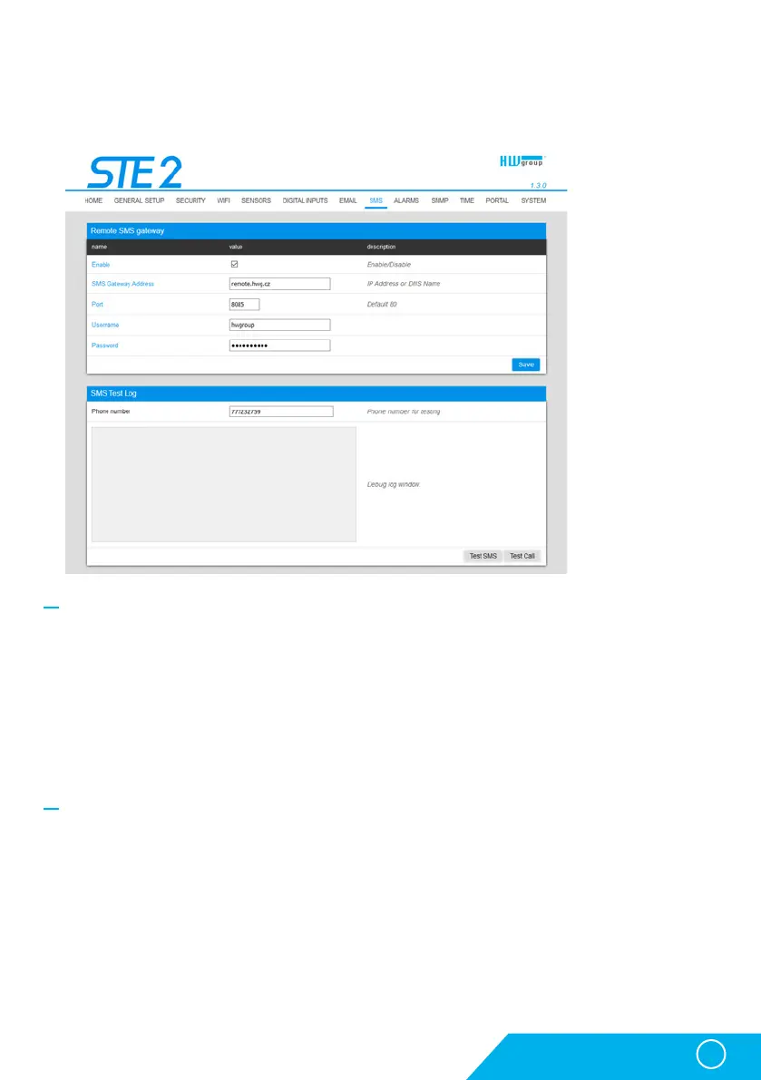 • SMS Gateway Address – IP address where “HWg-SMS-GW3” is located through which the device